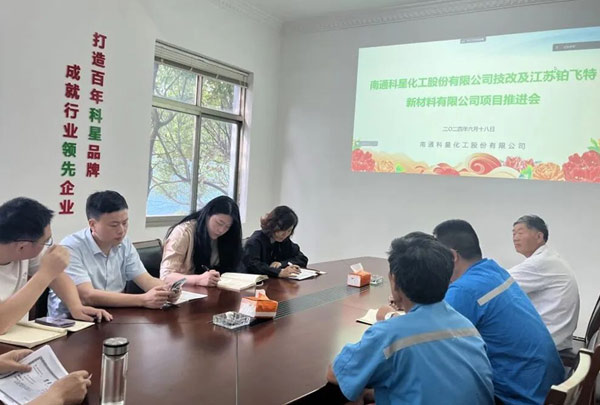 2024年6月18日下午,南通科星化工股份有限公司召開科星公司新項目技改及江蘇鉑飛特新材料有限公司新項目推進會。