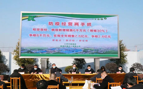 二十天后的2月20日,“防疫經營兩手抓,咬定目標,確保新增銷售6千萬元(增幅30%),爭取8千萬元,實現全年銷售2.6億元,爭取2.8億元”動員大會在廠區露天廣場召開。會議直奔主題,緊湊明快,現場激情高漲,令人振奮。這是科星公司在做好疫情防控的前提下,召開的一次具有戰略意義的動員會。