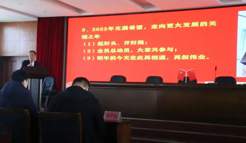 總經(jīng)理傅士超先生回顧并總結(jié)了去年一年的工作并對于目前工作中暴露的不足進(jìn)行復(fù)盤反思,對2022年的全年工作計(jì)劃和方向做出了重要安排和戰(zhàn)略部署。要求大家修內(nèi)功煉外功,內(nèi)樹文化外樹品牌,各部門牟定公司發(fā)展戰(zhàn)略,各司其職,團(tuán)結(jié)協(xié)作,合力達(dá)成2022年目標(biāo)。