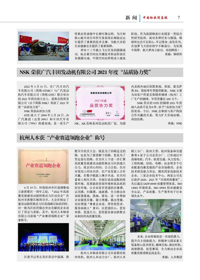中國軸承信息報2022年第4期節選轉載,科星化工詳見第八頁。