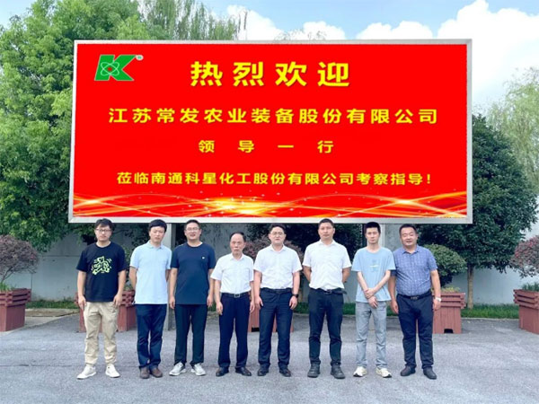 2023年8月9日江蘇常發(fā)農(nóng)業(yè)裝備股份有限公司領(lǐng)導(dǎo)一行親臨南通科星化工股份有限公司考察調(diào)研,科星董事長吳龍鐵、執(zhí)行總裁吳曉強、銷售副總吳昌祥參與接待。