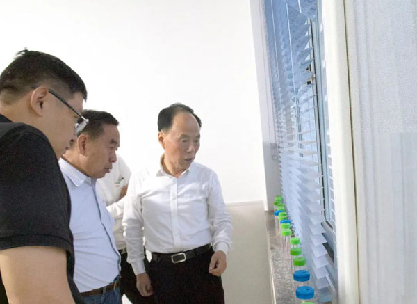 浙江雙環領導一行首先參觀了科星生產基地,詳細了解了生產工藝流程、產品檢驗檢測等情況,并對生產現場的管理高度認可。隨后又來到總部研發中心,科星董事長吳龍鐵向尤總一行介紹了科星實驗室六大事業部和研發儀器設備等相關情況。