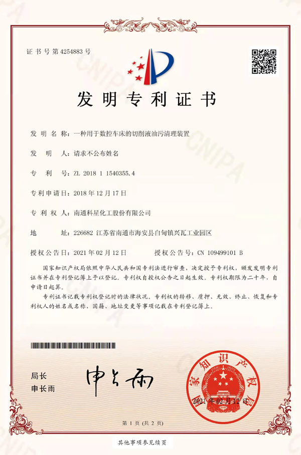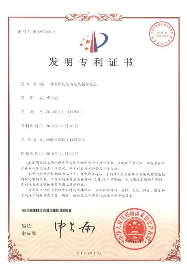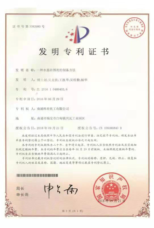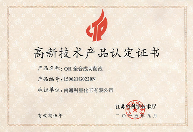 高新技術產品認定證書-EP-富醇納米合金緩蝕劑